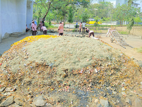 Biodigester and vermicompost pits are extensively used to manage solid waste. All the garden and food waste from the canteen goes to compost pits. There are 12 vermicomposting pits with four curing heaps allotted near the new engineering building canteen spread over a 520 sq. mtr. plot. It uses a simple heap culture method while utilising deep burrowing worms.